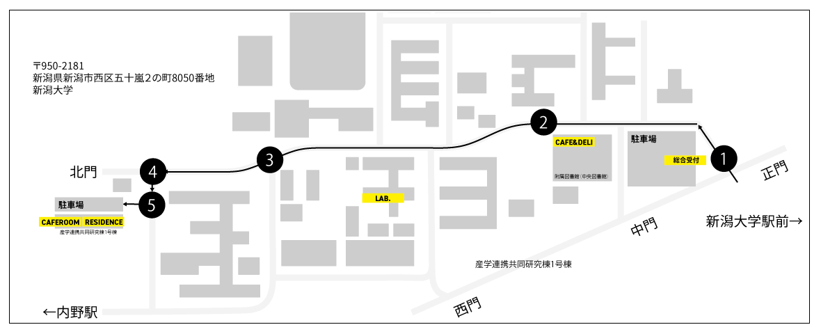 すべての施設は新潟大学内に位置しているため、本ページでは学内での案内のみを掲載しています。